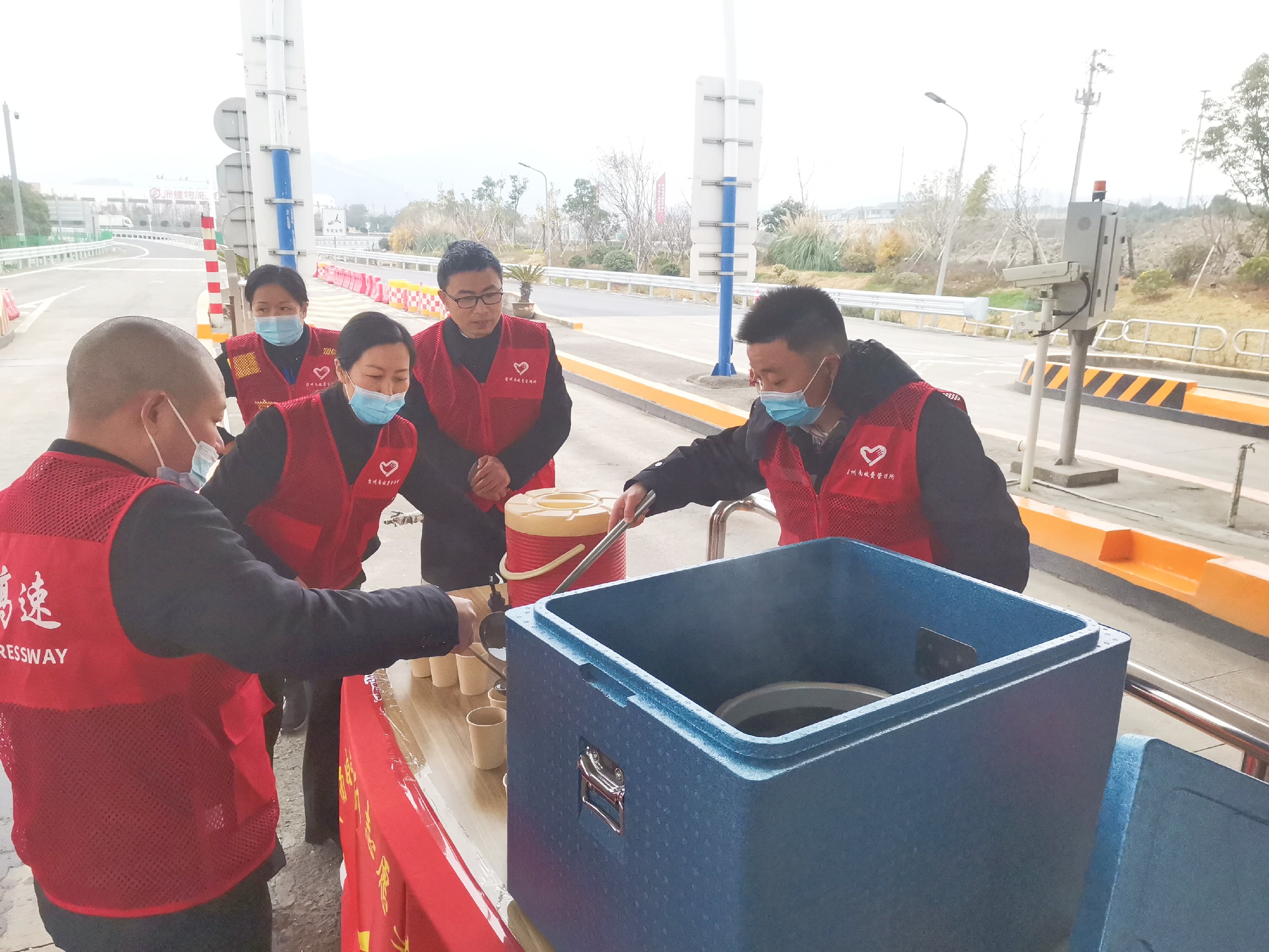 1月7日上午,臺(tái)州南收費(fèi)所黨支部組織“寒冬送溫暖,真情滿高速”活動(dòng)。該活動(dòng)由收費(fèi)所負(fù)責(zé)人帶頭,全體黨員及青年志愿者踴躍參與。
