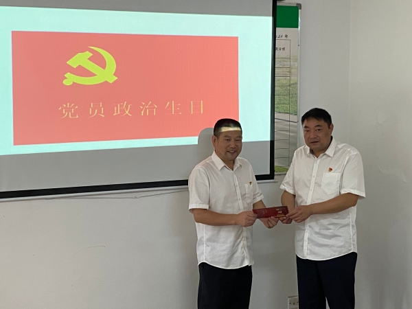 會議現場,黨支部書記李海福向李學來贈送“政治生日”賀卡,并送上“政治生日”祝福,讓李學來感受到來自黨組織的關懷。