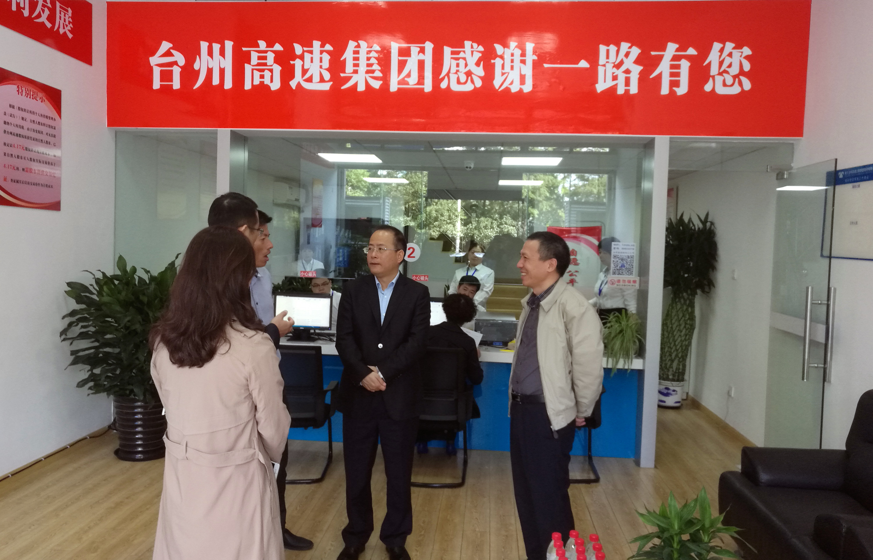 圖為市委常委、常務(wù)副市長董貴波到臺州高速股權(quán)椒江收購點(diǎn)調(diào)研