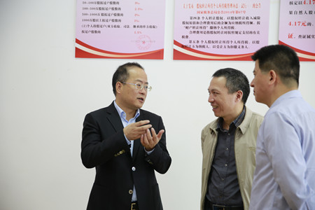 當(dāng)看到另一位前來辦理股權(quán)轉(zhuǎn)讓手續(xù)的股東拿出當(dāng)年的購買高速股權(quán)時的協(xié)議時,董貴波上前拿起來端詳:“這是份珍貴的物品,保存了有二十幾年了吧,作為當(dāng)年支持臺州高速公路建設(shè)的憑證,現(xiàn)在可以留作紀(jì)念了。”這位股東是市立醫(yī)院的醫(yī)生,說自己當(dāng)時在醫(yī)院的號召下,買了2000股。董貴波對他們當(dāng)年的舉動表示感謝。