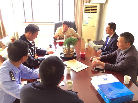 圖為市國資委主任徐豪和集團(tuán)總經(jīng)理張建平一起走訪市國稅局股東單位