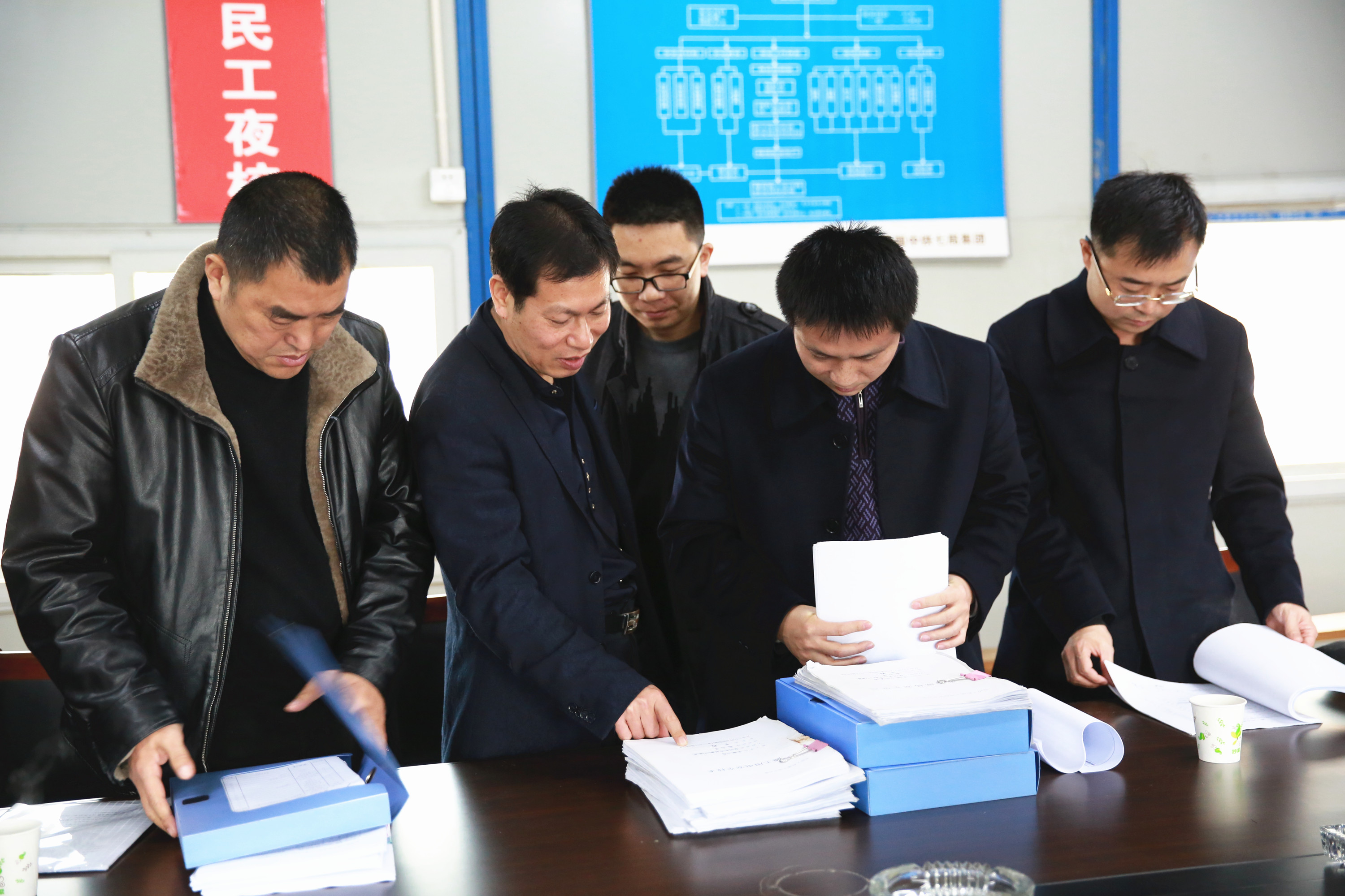 圖為檢查人員在檢查內業(yè)資料 檢查組沿著內環(huán)路(黃巖段)主線,實地巡查了沿線的工程建設情況及安全防護設施,并對每個標段安全臺帳、內業(yè)資料進行了系統(tǒng)性的檢查。檢查結果顯示,內環(huán)路(黃巖段)各施工單位的臺帳資料齊全,收集系統(tǒng)、規(guī)范。江輝在檢查時強調,安全工作永遠在路上,特別是臨近年關,又是內環(huán)路的收尾階段,更是不能有一絲一毫的放松,他要求施工單位不能發(fā)生安全事故和欠薪事件,要讓內環(huán)路的廣大工作者度過一個安定祥和的春節(jié)。