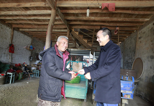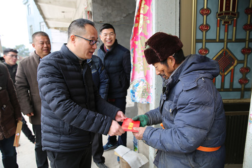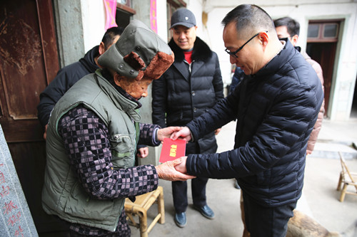 圖為集團副總經理章海峰慰問困難群眾 隨后,兩位領導到每戶幫扶困難家中,給他們送去集團的慰問與新春祝福,特別是塘上村百歲抗戰老兵鮑先年,老人家雖然已經102歲,但是依然精神矍鑠,看到章海峰送上的慰問金,鮑先年還舉手敬禮,盡顯軍人風采。對此,在場所有人無不感到欣慰與高興。 此次走訪共慰問44戶困難戶。走訪過程中,受幫扶慰問的困難家庭深受感動,他們深感集團的溫暖,并表示在今后的生活中,努力克服困難,積極面對人生,不辜負集團對自己的親切關懷與幫助。 鄭蔚張波