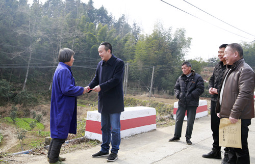 圖為集團副總經理羅小將慰問村里困難群眾 在潘山頭村座談會上,羅小將談到,今天是代表集團來慰問幫扶村困難戶,通過結對共建,村里要發揮自身優勢努力發展村集體經濟,集團也會盡力幫助潘山頭村建設和發展。羅小將強調,要切實發揮村里黨組織建設,充分發揮戰斗堡壘作用,帶領群眾一起推進潘山頭村經濟發展,實現同步小康的總體目標。 在塘上村,章海峰表示該村地理位置優越,但是資源匱乏,村兩委要爭取縣政府項目扶持資金和政策,利用有限的資源參與到政策扶持項目,發展壯大村集體經濟。章海峰要求農村指導員楊江偉落腳點在村,著力點在民,肩負職責,引導村兩委班子發揮領導核心作用,為群眾排憂解難,促進農村基層組織建設,加快塘上村全面奔小康的步伐。