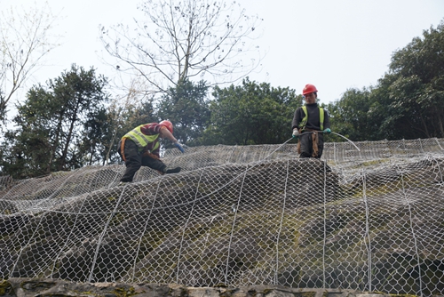 “錨桿施工、掛網制作安裝、柔性防護網編制對技術性和安全性都有極高的要求,我們都嚴格按照施工圖紙及規范要求施工。”工程負責人楊曉東介紹。