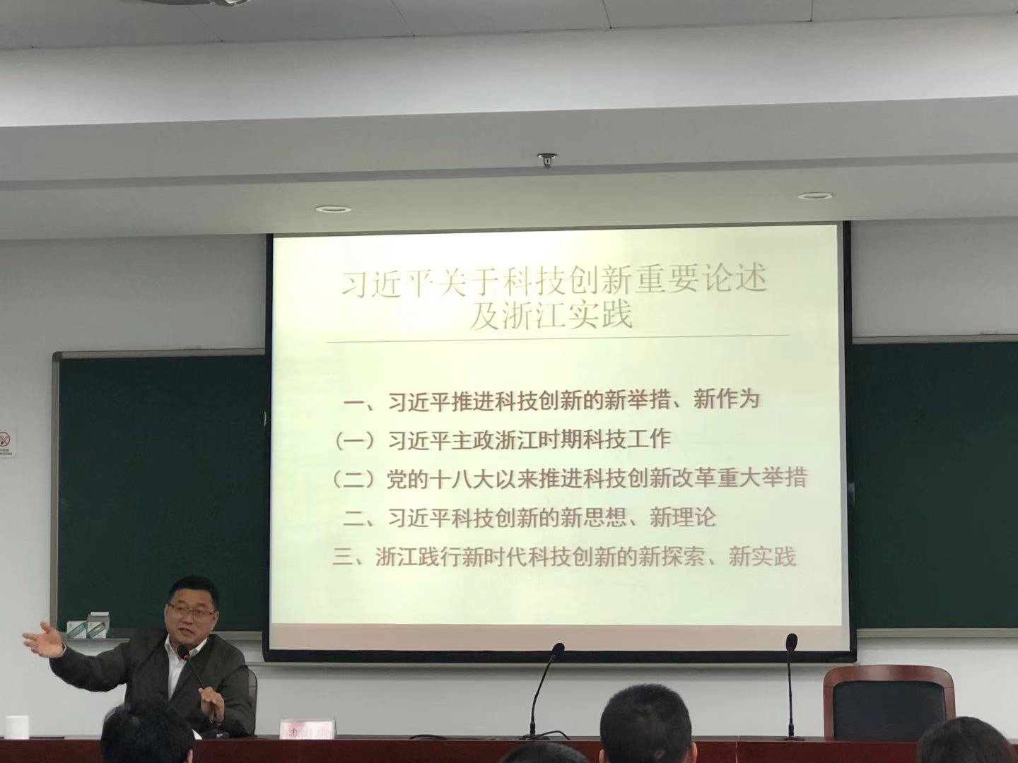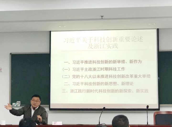 圖為浙江省科技廳教育培訓(xùn)中心副主任戴銀燕以《習(xí)近平科技創(chuàng)新及浙江實(shí)踐》為題授課