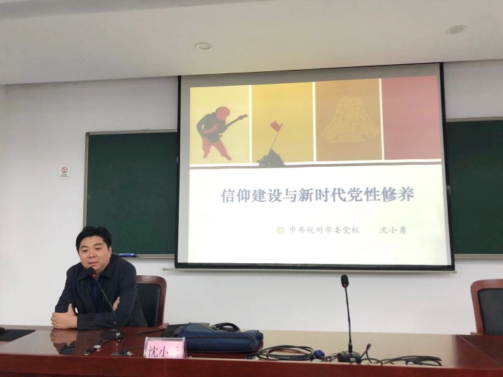 圖為杭州市委黨校馬克思主義基本理論教研部教授沈小勇以《信仰建設(shè)和新時(shí)代黨性修養(yǎng) 沈小勇》為題授課