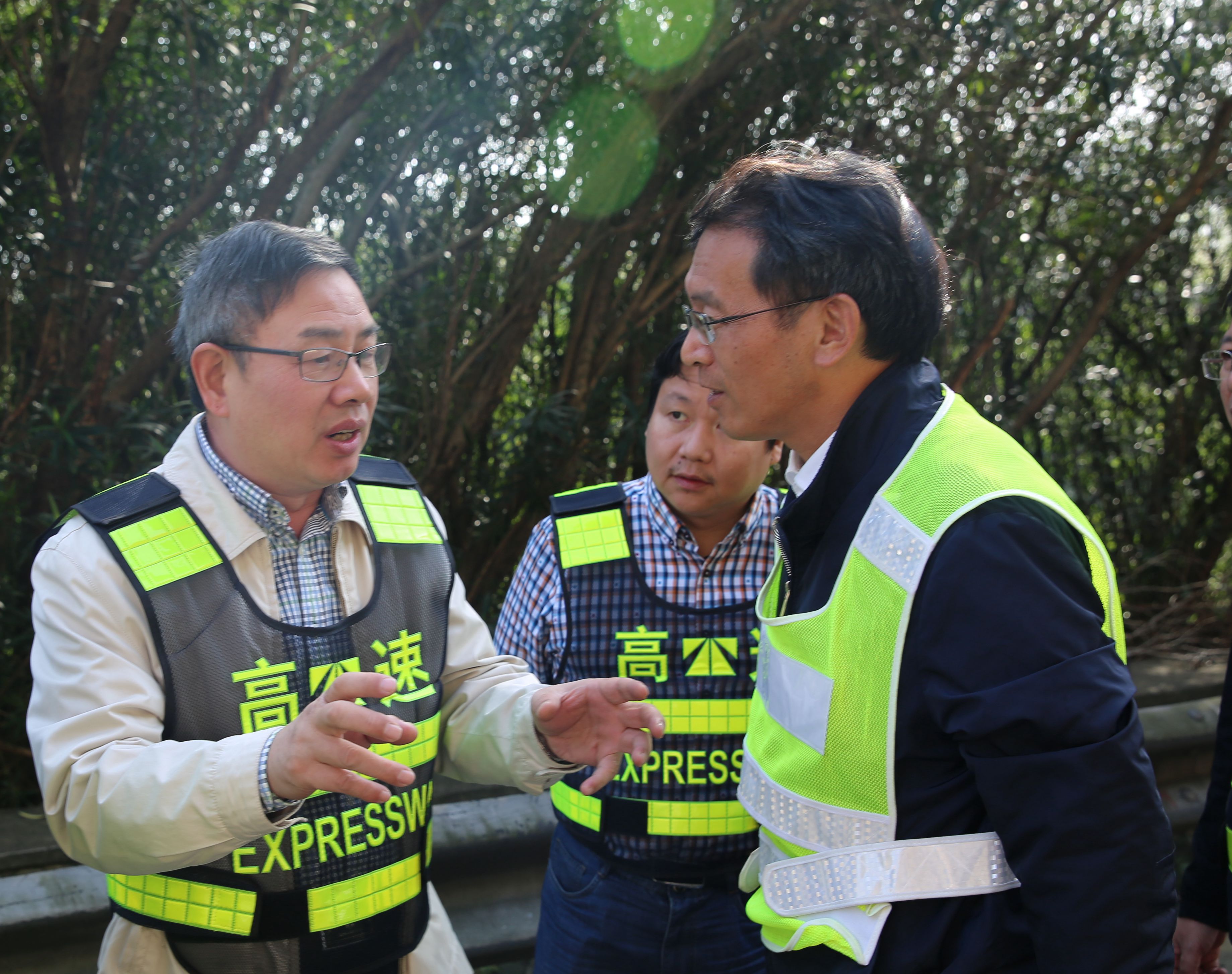 圖為陳文波在現(xiàn)場(chǎng)詳細(xì)了解養(yǎng)護(hù)施工情況