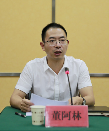 圖為集團(tuán)副總經(jīng)理董阿林傳達(dá)文件精神