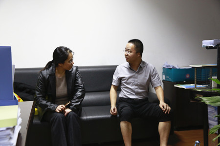 圖為當(dāng)晚,辦公室負(fù)責(zé)人與股東溝通股權(quán)轉(zhuǎn)讓事宜