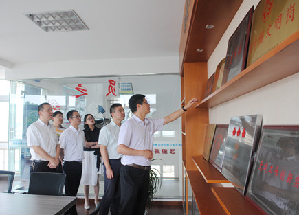 圖為團省委基層工作部部長陳杰一行對臺州所取得的榮譽表示贊賞