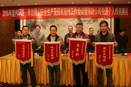1月17日下午,臺州高速市政公司于花園山莊組織召開2016年度內環路(黃巖段)安全生產及信息宣傳工作會議暨市政公司先進個人頒獎典禮。
