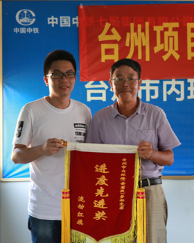 圖為為獲獎(jiǎng)施工單位頒發(fā)流動紅旗